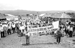 Se cita como ejemplo: ``en el ejido Ibarra los desplazados son mayoría; durante 1994, en pláticas con los zapatistas, llegaron a aceptar su retorno, se trasladó un grupo amplio para ir pactando la forma de convivencia, pero una vez que se instaló a gente de las ONG la orientación cambió radicalmente: o se sumaban plenamente al EZLN, o tendrían que salir y perder sus derechos agrarios, resultando que hasta el momento permanecen como desplazados''.
