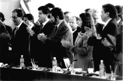 Después de clausurar los trabajos de la decimotercera reunión binacional, los representantes diplomáticos acudieron a la residencia oficial de Los Pinos para informar al presidente Ernesto Zedillo de los resultados del encuentro en sus 16 grupos de trabajo.