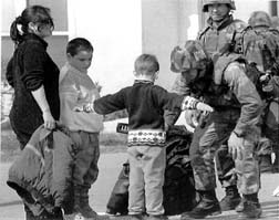 Un infante de Marina registra en busca de armas a un niño que será