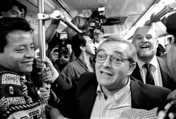 equipo de campaña y periodistas, por primera vez en el Metro.