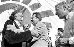 Carlos Payán y Porfirio Muñoz Ledo se saludan