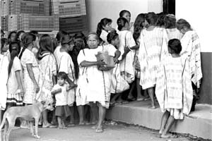 Amuzgas de Xochistlahuaca forman fila en un inmueble del DIF para