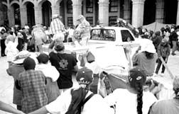 A pesar de que la Plaza de Armas se encuentra rodeada por los cuerpos antimotines de la Policía Preventiva, de agentes de la judicial y de elementos de la Policía Metropolitana del ayuntamiento panista, éstos no intervinieron en los hechos.