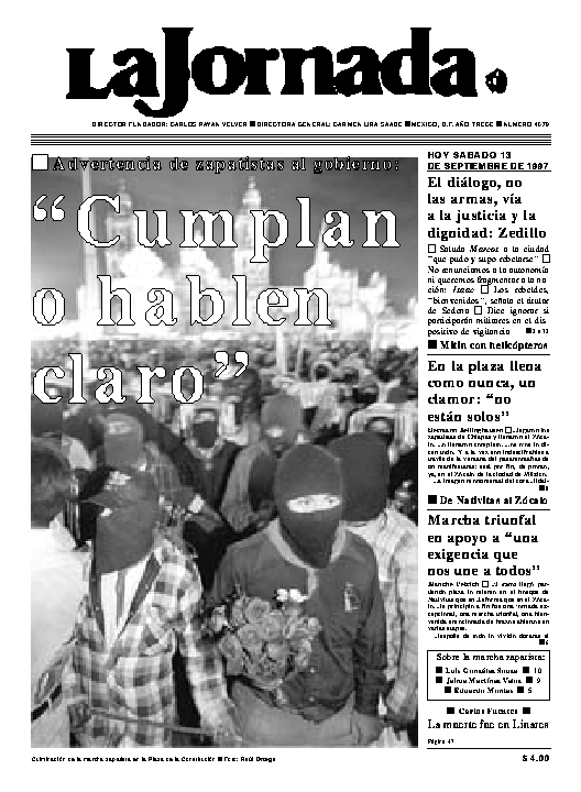 El arribo de los zapatistas al Distrito Federal será el diá 12 de