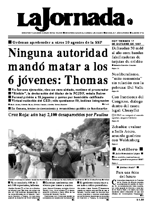 Se agradece profundamente a la Sociedad de Computación Swarthmore College, en especial a Justin Paulson por haber proporcionado y mantenido el sitio donde se dió a conocer la página de La Jornada.