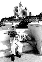 Afuera del hotel se juntan cada tarde algunas hermosas jóvenes cubanas a la caza de extranjeros. Una invitación a la cafetería, un paseo por la tienda para diplomáticos del hotel, unos jeans Pierre Cardin o unos cigarros, calman las ansias.