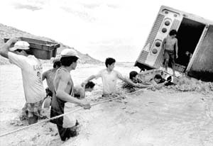 camión varado en la carretera Panamericana Ť Foto: Ap