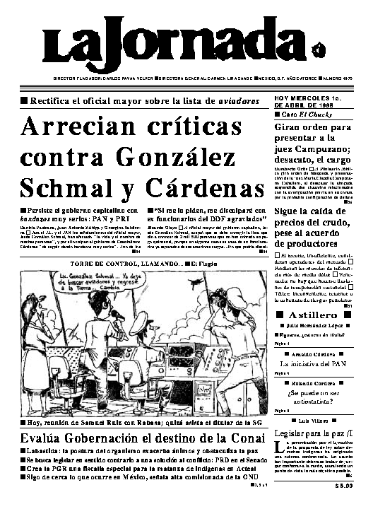 Primera Plana Contraportada Editorial Opinión Suplementos Fotos Cartones de los moneros de La Jornada Búsquedas en La Jornada