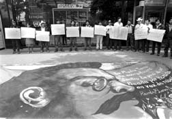 Protesta de indígenas mazatecos frente a las oficinas de la ONU en la