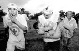 comunidad La Chilanguera. En la gráfica, rescatistas trasladan