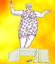 Matea: ¡Barrigona, panza de hule... llanta Michelín! ¡No exageres con tus adulaciones, querido! (Mira el cigarro.) ¿Pero qué estoy haciendo? ¡Me fumo un cigarro recién levantada! ¡¡Sólo!! ¡Sin café! ¡Ahorita me lo tomo! (Se dirige a la mesa y se sirve del termo una taza de café; echa un ojo a la azucarera.) ¡Mmmmh, está amargo! A ver, subí dieciséis kilos en los últimos dos meses... como que puedo ponerle una cucharadita... Qué puede hacer una cucharadita en este corpachón... se pierde. (Ejecuta.) Ocho kilos al mes... (Refiriéndose al azúcar.) Una no es ninguna, dos es la mitad de una... (Ejecuta.) Tres es apenas una. (Retoma el discurso.) Dos kilos por semana... (Vacía toda la azucarera directamente en la tacita mientras dice:) ¡Basta de privaciones! (Se toma el café y luego se dirige a la cama.) ¡Si sigo así llegaré a los doscientos en menos de lo que canta un gallo! ¡La Teresina del 2000... la mujer más gorda del mundo! (Da otra patada a la cama. El Hombre suspira. Matea entra al baño. Se trasluce su abundante silueta.) No, tú no te puedes acordar de ella... aún no habías nacido... La exponían en los barrancones de las ferias... deslizaba entre los pliegues de la tienda un muslo así de gigante... (Levanta una pierna, imitando a la Teresina.) Desmesuradamente gorda y rebosada. ``¡Toquen, toquen!'', gritaba el merolico, ``¡entren y podrán tocar lo demás!'' (Se levanta el camisón, se baja las pantaletas, se sienta en el excusado y orina.) Luego luego se juntaba la bola de morbosos pervertidos... ¿Me escuchas, querido...? Todavía podría tener un chance... ¿Qué dices...? Pongo un bonito barracón...
