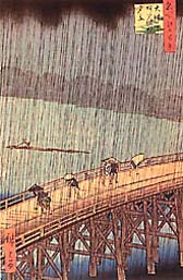 Se ve un puente sobre el agua y se ve en él a la gente.