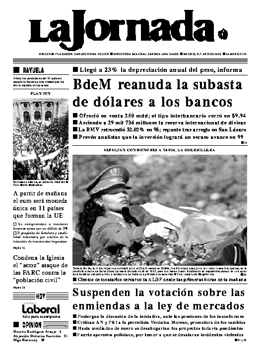 Sus amigos de La Jornada y de la Coordinación de Sistemas le deseamos a usted lector un FELIZ AÑO NUEVO con prosperidad y éxito para 1999