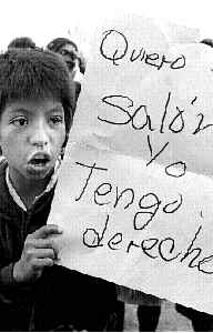 Alumnos de escuelas marginadas de Ecatepec se manifestaron en la explanada de la presidencia municipal y exigieron más recursos para sus planteles Ť Foto: José Carlo González