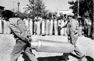 Largas filas, luego de varios días de desabasto de gas Ť Foto: Rosaura Pozos