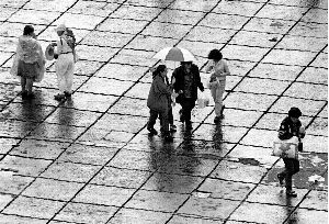 El fugaz aguacero que cayó la tarde de ayer no impidió el solaz en el Zócalo capitalino Ť Foto: Cristina Rodríguez