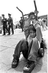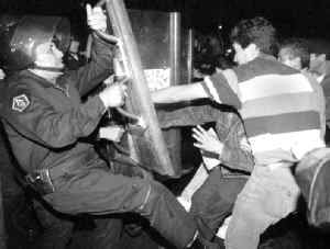 En la lucha por mantener su bloqueo en el Periférico, maestros resistieron las embestidas de los granaderos Ť Foto: Fernando Castillo/Ap