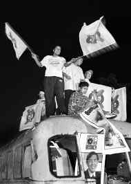 Simpatizantes de Cuauhtémoc Cárdenas a las afueras del Museo Tecnológico de la Comisión Federal de Electricidad Ť Foto: Marco Peláez