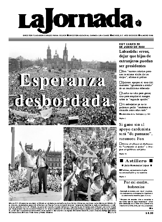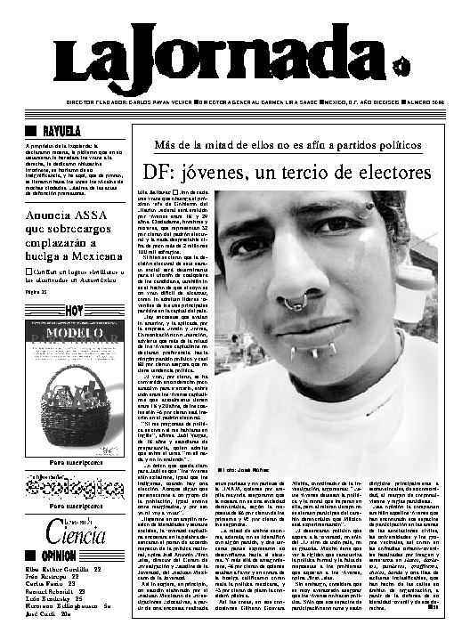 La Jornada, Coordinación de Sistemas Francisco Petrarca 118, Col. Chapultepec Morales, delegación Miguel Hidalgo México D.F. C.P. 11570 Teléfono (525) 262-43-00, FAX (525) 262-43-56 y 262-43-54