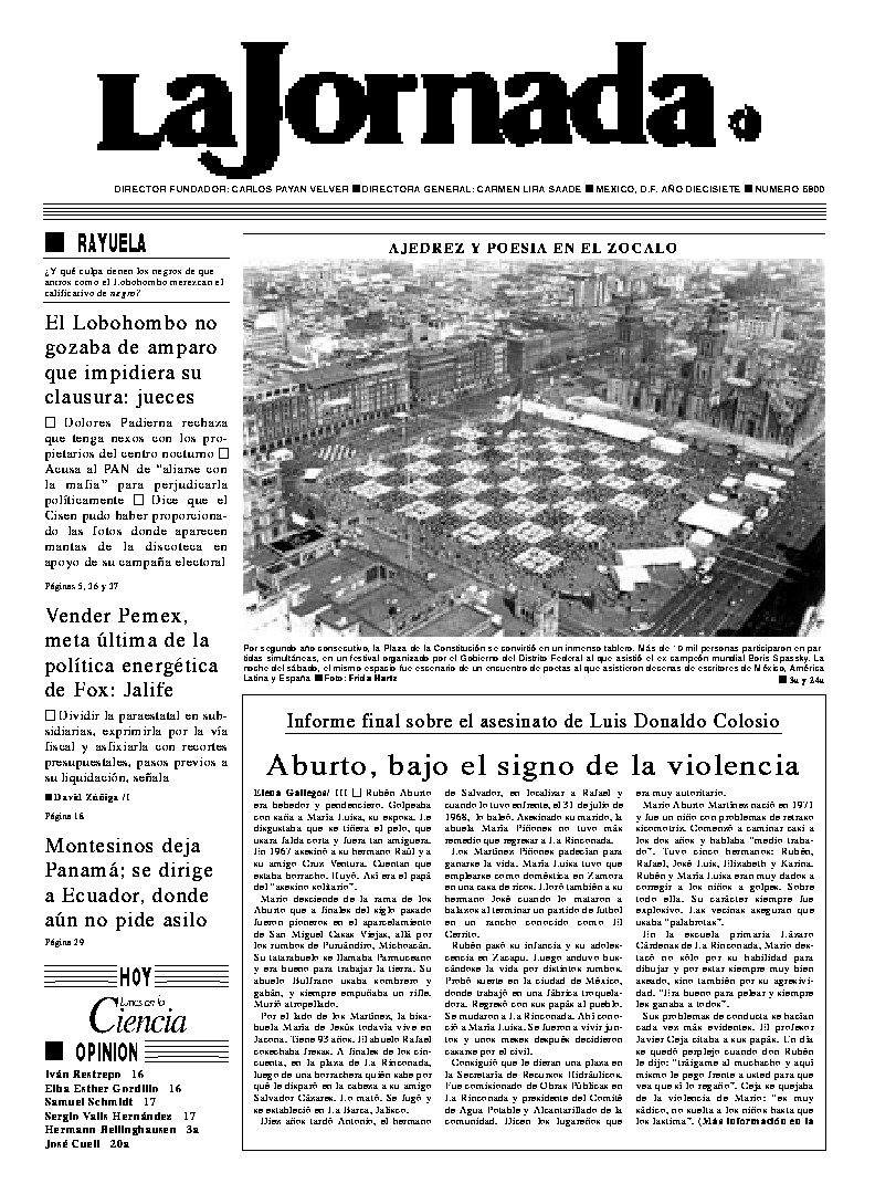 La Jornada, Coordinación de Sistemas Francisco Petrarca 118, Col. Chapultepec Morales, delegación Miguel Hidalgo México D.F. C.P. 11570 Teléfono (525) 262-43-00, FAX (525) 262-43-56 y 262-43-54