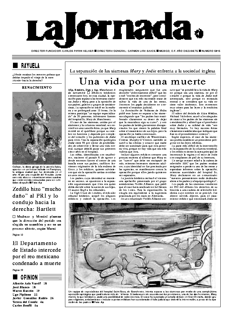 La Jornada, Coordinación de Sistemas Francisco Petrarca 118, Col. Chapultepec Morales, delegación Miguel Hidalgo México D.F. C.P. 11570 Teléfono (525) 262-43-00, FAX (525) 262-43-56 y 262-43-54