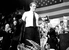 Cierres de campaña en Missouri del candidato demócrata, Al Gore (imagen superior), y en Wisconsin del aspirante republicano, George W. Bush Ť Fotos: Ap