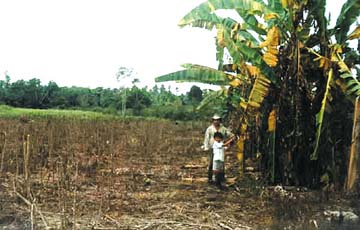 efectos del glifosato. A la distancia, se ve media hectárea sembrada