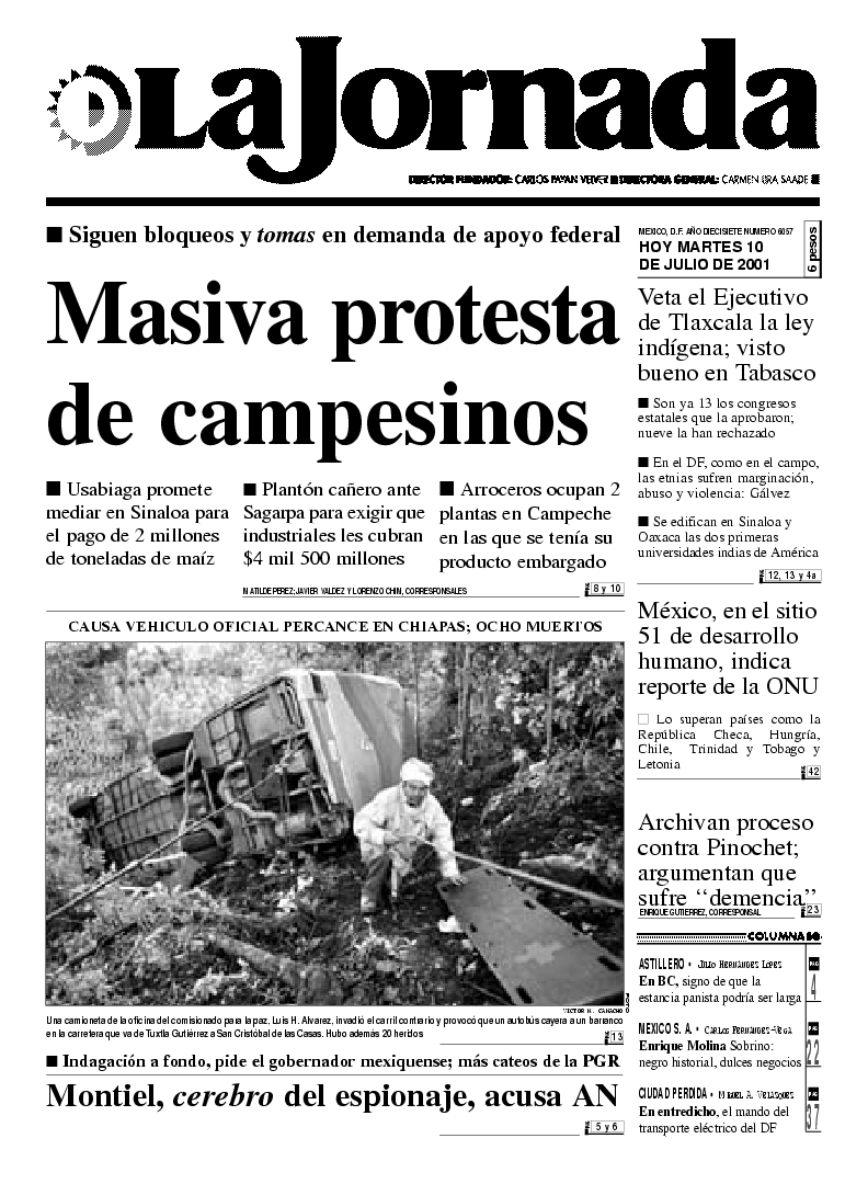 La Jornada, Coordinación de Sistemas Francisco Petrarca 118, Col. Chapultepec Morales, delegación Miguel Hidalgo México D.F. C.P. 11570 Teléfono (525) 262-43-00, FAX (525) 262-43-56 y 262-43-54