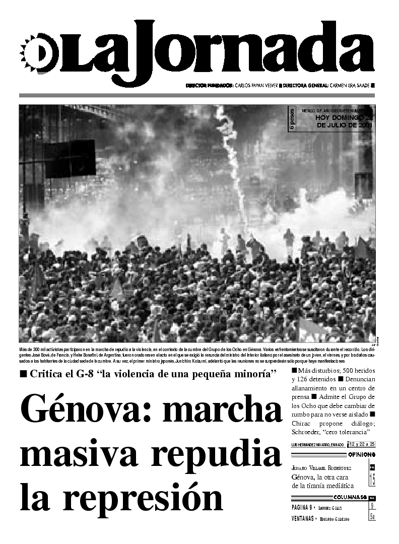 La Jornada, Coordinación de Sistemas Francisco Petrarca 118, Col. Chapultepec Morales, delegación Miguel Hidalgo México D.F. C.P. 11570 Teléfono (525) 262-43-00, FAX (525) 262-43-56 y 262-43-54