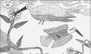 y chistes aparecen salpicados de acuarela y crayón multicolor de