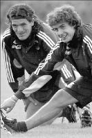 En tanto, Claudio Caniggia realizó este lunes algunas prácticas con una venda en la lesionada rodilla izquierda, después de sufrir hace dos días un traspié en su recuperación.