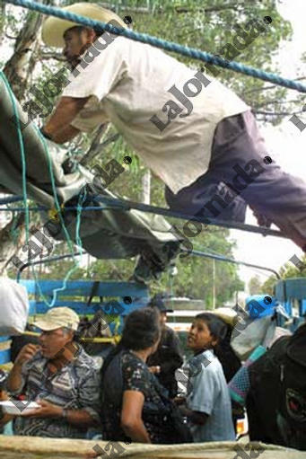 | Familiares de  los presos detenidos de Teojomulco,  por la matanza de los 21 campesinos de Oaxaca, descansan en la orilla de la carretera Puebla-Cuautla-Ayotla , durante su trayectoria a la Ciudad de Mexico en protesta para que sean liberados.  El dia de hoy seran recibidos en la Camara de Diputados,  12 de junio 2002. Foto: LA JORNADA / Cristina Rodriguez |