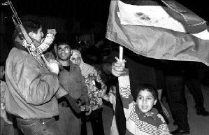 Por la noche, en la franja de Gaza, un pa-lestino armado