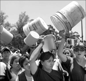 Vecinos de la sierra Santa Catarina, en Iztapalapa, se manifestaron frente a la residencia oficial para rechazar que el gobierno mexicano entregue agua a Estados Unidos FOTO CRISTINA RODRIGUEZ