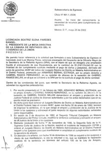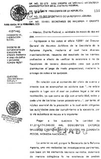 a los secretarios de Hacienda y de la Reforma Agraria al pago de la indemnización