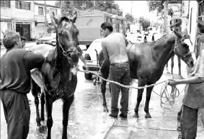 HIGIENE EQUINA  Servicio de lavado equino en el Barrio de Santa Bárbara, en Iztapalapa, Distrito Federal FOTO CARLOS CISNEROS