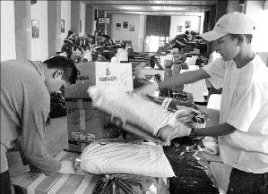 AYUDA POR LLUVIAS  Voluntarios dividen los víveres para los damnificados de la comunidad La Ventilla, en San Luis Potosí FOTO MARCO PELAEZ