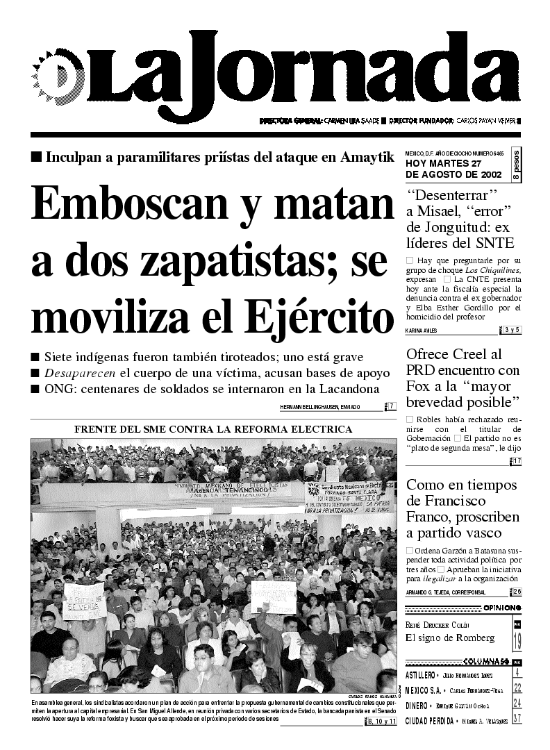 En asamblea general, los sindicalistas acordaron un plan de acción para enfrentar la propuesta gubernamental de cambios constitucionales que permiten la apertura al capital empresarial. En San Miguel Allende, en reunión privada con varios secretarios de Estado, la bancada panista en el Senado resolvió hacer suya la reforma foxista y buscar que sea aprobada en el próximo periodo de sesiones FOTO CARLOS RAMOS MAMAHUA