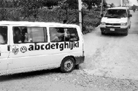 luego sube a la camioneta en la que le esperan sus compañeros,