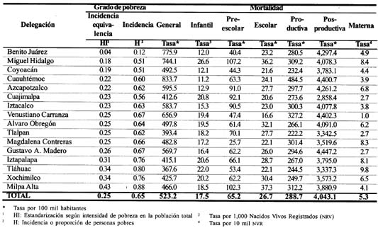 Así, la mortalidad más alta por grado de pobreza ocurre en las delegaciones Milpa Alta, Tláhuac, Xochimilco e Iztapalapa, mientras que en Benito Juárez, Coyoacán y Miguel Hidalgo es la más baja. Sin embargo, ésta última registra los números más altos de mortalidad infantil, prescolar y escolar, la cual se explica por la presencia de importantes cinturones de pobreza en su territorio, de acuerdo con información de la Secretaría de Salud del Distrito Federal.