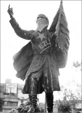 Como en Fuenteovejuna, nadie reivindicó la acción, pero se dejó constancia de la intención: rendir homenaje a los insurgentes que hace 200 años lucharon por México vistiendo sus imágenes de piedra y bronce con los colores y símbolos de los que hoy se llaman a sí mismos insurgentes zapatistas en Chiapas.
