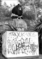 Vistieron con símbolos zapatistas una treintena de estatuas