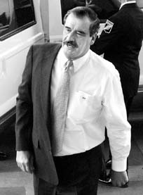 Vicente Fox a su llegada al Centro Libanés, donde sostuvo una reunión con empresarios. Ahí el mandatario aseguró que ``el gobierno está cumpliendo con su parte, al evitar no sólo las crisis recurrentes, sino también al fortalecer la economía y la infraestructura'' FOTO JOSE CARLO GONZALEZ