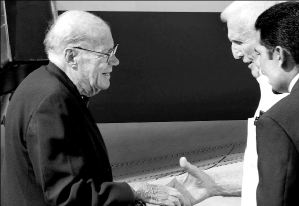 Robert McNamara, quien fuera secretario de Defensa de Estados Unidos durante el gobierno de John F. Kennedy, es recibido en el aeropuerto de La Habana por el vicepresidente del Consejo de Estado de Cuba, José Ramón Fernández. El ex funcionario llegó a Cuba para participar en la conferencia internacional "La crisis de octubre, una visión política 40 años después" FOTO AFP
