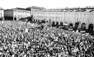 Los andenes vacíos en la estación del ferrocarril de Roma, y la plaza de San Carlos, en Turín, atestada de manifestantes, dan testimonio del éxito de la movilización nacional convocada por la Confederación General Italiana del Trabajo FOTOS AFP
