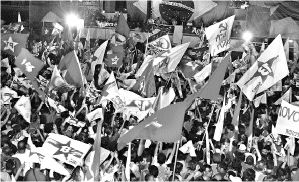 propagandísticos, y a la derecha, el virtual presidente de Brasil