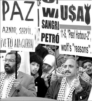 MILES DE ESPAÑOLES RECHAZAN LOS PLANES BELICISTAS DE BUSH CONTRA IRAK
