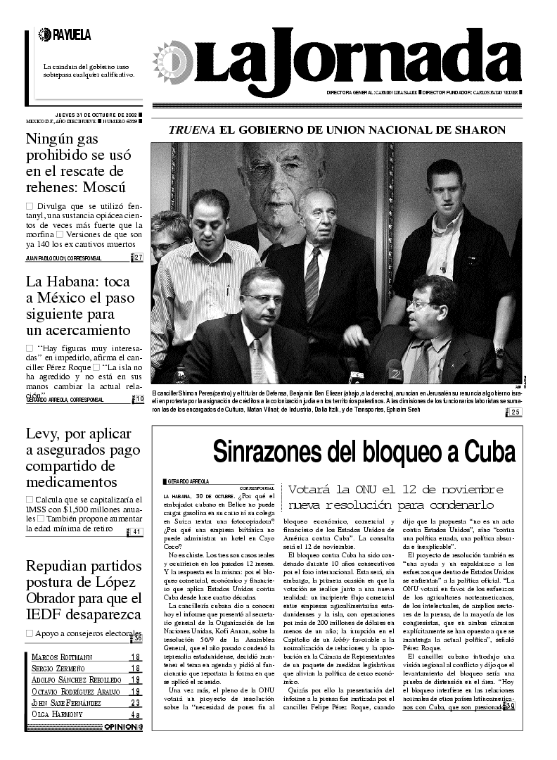 TRUENA EL GOBIERNO DE UNION NACIONAL DE SHARON