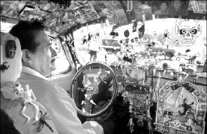 TRADICION SOBRE RUEDAS  Javier Rodríguez, de 64 años, lleva 15 de taxista y 13 poniendo ofrenda en su vehículo. La de esta ocasión consta de aproximadamente 600 miniaturas, y tardó 10 días en formarla FOTO YAZMIN ORTEGA CORTES
