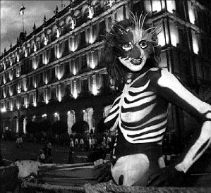 VERBENA  Esqueleto a su paso por el Zócalo, durante el desfile que se llevó a cabo ayer en calles del Centro Histórico para celebrar el Día de Muertos FOTO JOSE CARLO GONZALEZ